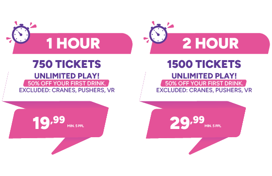 Crane machines, coin pushers, and VR simulators are not part of the package.